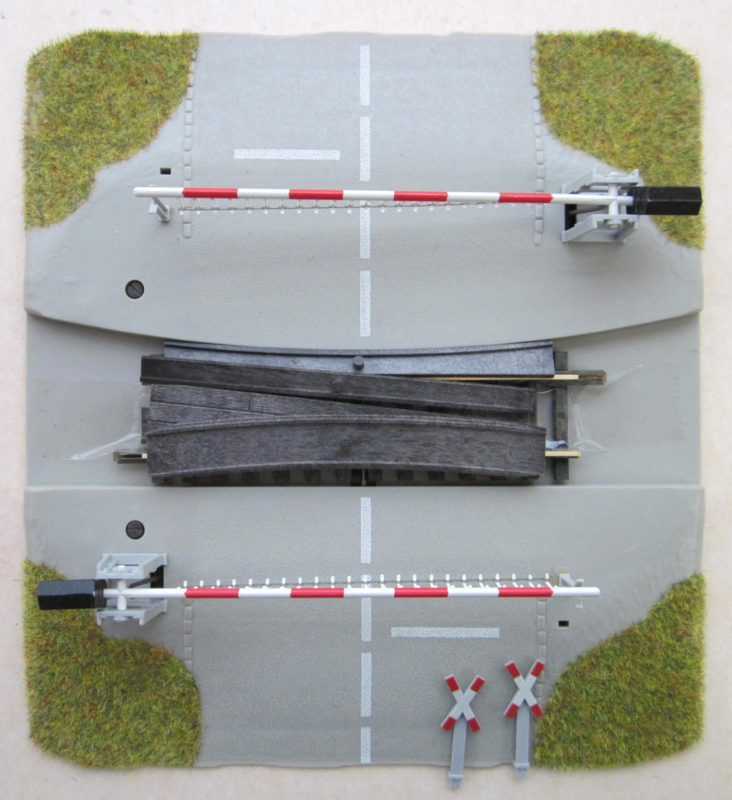 | Opmerkingen: | * z.g.a.n. Inclusief opvulstukken en andreaskruizen. De slagbomen worden bediend door het gewicht van passerende locs, de gevoeligheid is eenvoudig instelbaar. Ook bruikbaar bij Profi-rails, daarbij moet een randje van de ingelegde rail worden afgesneden. |
