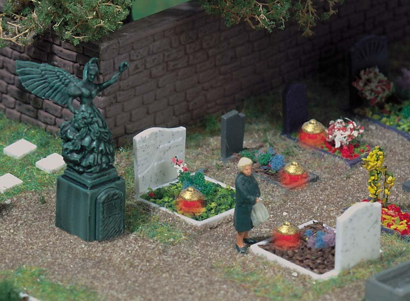 | Omschrijving: | 4 grafstenen met rode graflichten (LED's). 1 engel standbeeld. |