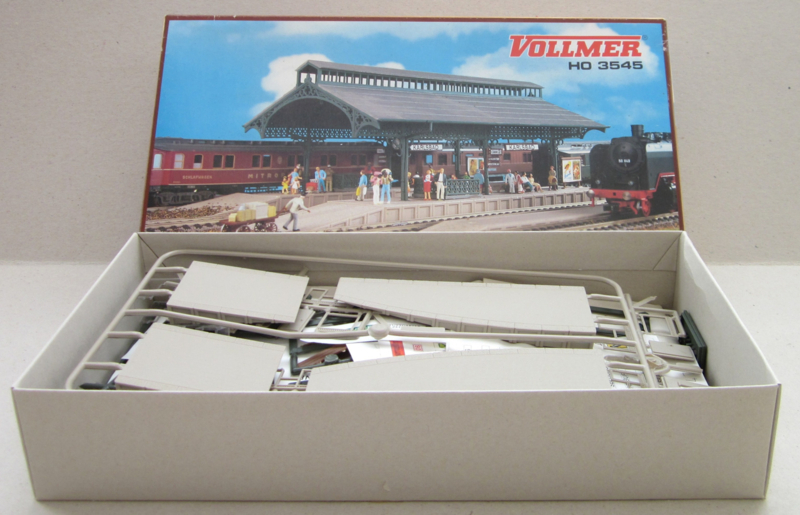 | Opmerkingen: | Doos met extra te monteren onderdelen. De verzameling is samengesteld uit meerdere bouwdozen Vollmer 3545. De daken op de perrons zijn niet vastgelijmd. |